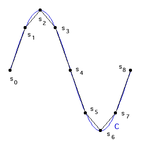 We choose points s0, s1, s2, … sn along the path C and then connect these points as shown in the figure above.