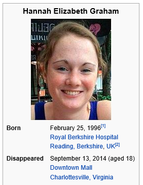 Hannah Graham (February 25, 1996 – c. September 13, 2014) was an 18-year-old second-year British American student at the University of Virginia who went …
