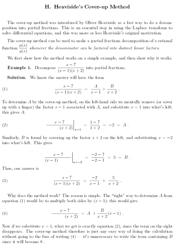 The cover–up method was introduced by Oliver Heaviside as a fast way to do a …. coefficients, and then use the cover–up method, but with complex numbers. At.
