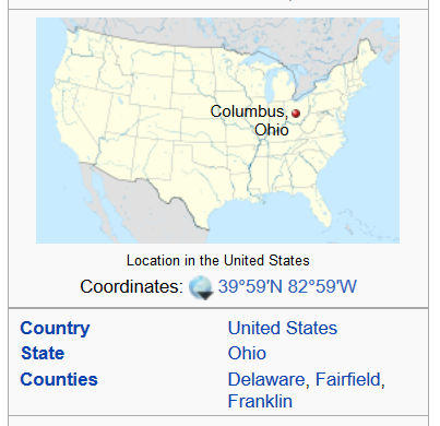 Now, we notice the latitude coordinates of the State of Ohio in North America.