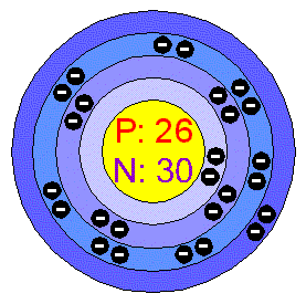 the iron atomic nucleus with 26 protons and  30 neutrons..